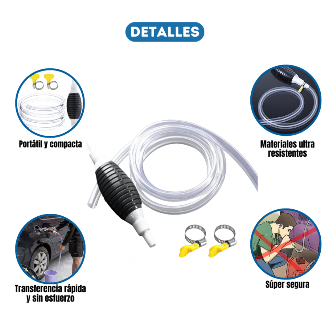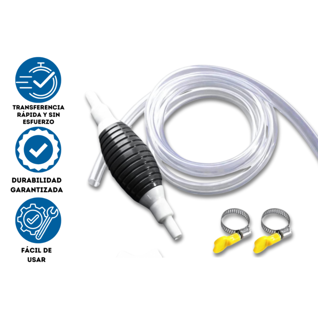 Olvídate de derrames y de tragar gasolina. Con esta bomba manual tendrás el control total para transferir líquidos de manera limpia y rápida