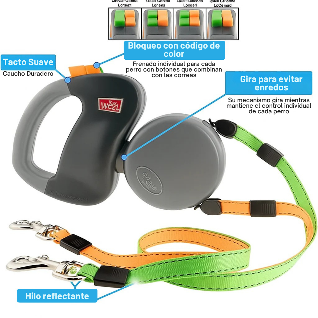 Correa Retráctil Doble 360° - Paseos sin enredos