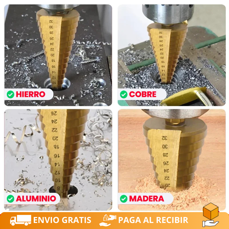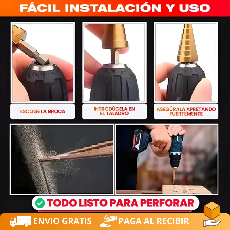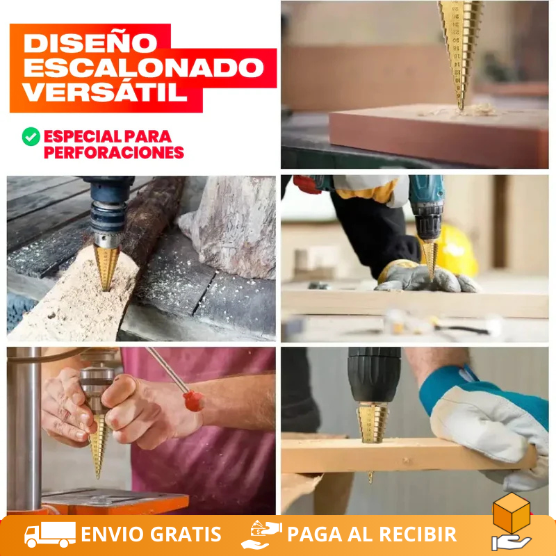 Incluye: 1 set de 6 brocas escalonadas + estuche protector